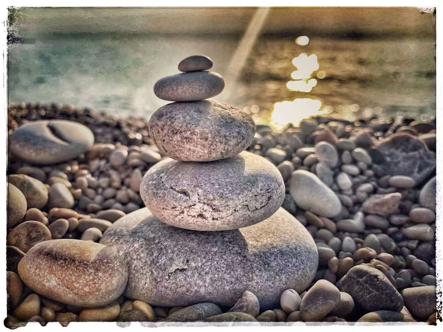 The road skimmed a beach tucked beneath cliffs— a small strip of sand wedged between rock walls, blue water within reach rolling polished pebbles back and forth like a hidden paradise. A grain, a world: here it’s a pebble, a world. There’s no sand, only stones rounded by time; given more years they’ll become sand. Time polishes not just life, but everything.