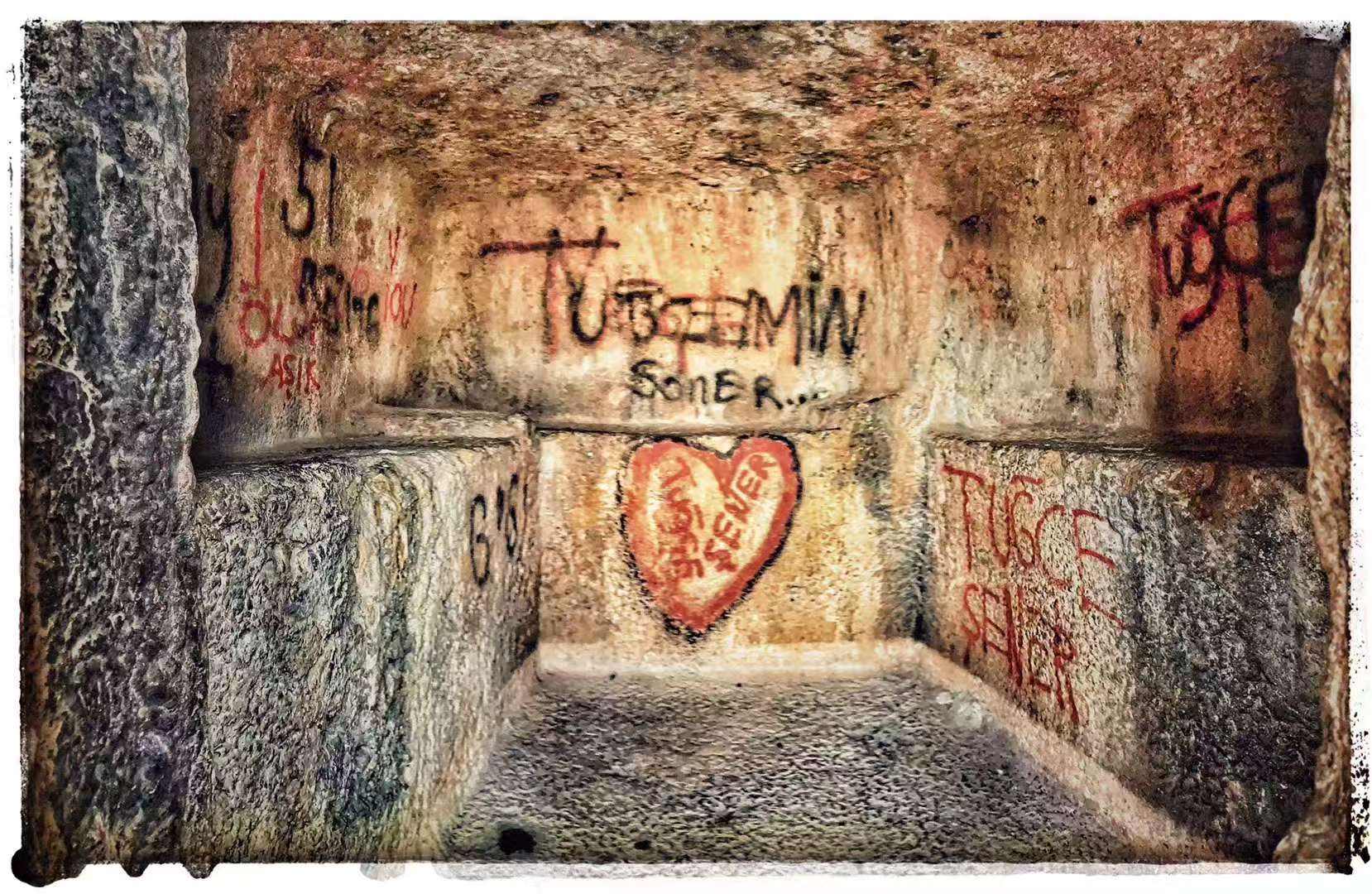 ● 一路向西,沿着海,古罗马基督教时期的大片遗址从路两侧不时的冒了出来,和国内一样,景点名称指示牌是枣红色的,这点挺国际的,上面依然是土耳其文,太多了,要是都去肯定不现实,所以只选择标志上有土文和英文并存的或是有世界文化遗产标志的下道去看看,要是没有注释真不知道他们相互本身也跨越了小千年,从公元前400年到公元400年,很有意思的是保存尚好的多数为墓地,有的直接开凿在山体上,有的就这么放在路中间的石柱上,最多的就是把破损的石棺直接放在路边的绿地里。共同点就是几乎全部被盗掘,漂亮的墓门上都被整齐的凿出了“天窗”,本来的地狱之门变成了真实的财富之门,里面除了雕刻空空的墓室,居然依稀还有人生活过的痕迹,以前躺着国王遗体石床上的头枕已经被“盘的”很光滑圆润,我想“盘”他的应该不是国王本人吧,最大的一座神庙门脸儿石门居然还有个推拉门的门槽,不知道这个设计是方便后人进去还是方便先人出来。路的行经慢慢开始向北,地貌也发生了变化,农田还是绿油油的,城市小镇一个个的连接着,不像东部地区一天也碰不到几辆车,丘陵地貌连绵起伏,圆润的像飞碟三五个落在一起的地貌还是第一次见到,开过一个爬坡翻山的小平台,下来照了张照片,和东地中海说再见了,不知道前面的爱琴海会用什么方式跟我打第一个照面儿。以弗所,我准备在这里歇脚,圣母的最后时光就是在这里度过的,晚间在街边的小店上吃了个肉卷,被十几只大喵一只盯着,有点不忍对视。远处的古堡被灯光照亮,有点像金色的东方卧龙,但在欧洲龙好像不像东方龙那么招人喜爱,但造型我还是比较喜欢欧洲龙的憨态。在不时徐徐飘来烤肉香的小阳台上看着街上形形色色的商家挂上门板准备打烊,这一天也许平凡,也许收益满满,也许我们一样期待明天。