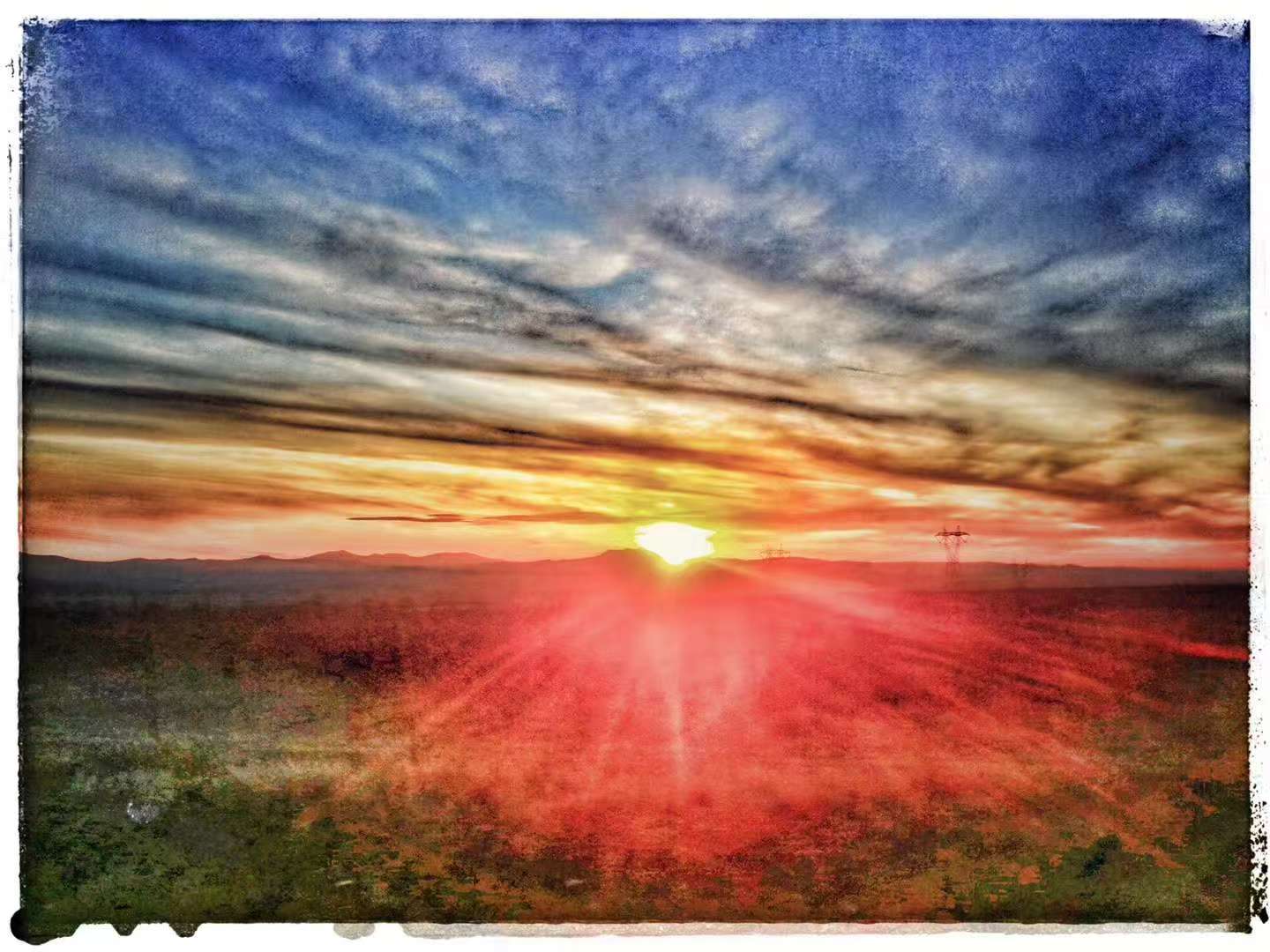 Beyond Ankara we took a national road with a bit more than 300 km to go. The unchanging yellow stayed with us until sunset. At 17:40 the palette flipped: everything turned gold, the sky from blue to pink; far snowy peaks suddenly appeared, and low hills riddled with caves multiplied—like slipping colored cellophane over a light bulb: vivid yet not abrupt. Two hunches: 1) the sun has set; 2) the destination is near.